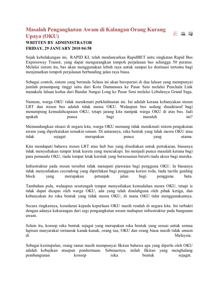 Masalah Pengangkutan Awam Di Kalangan Orang Kurang Upaya Pdf